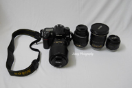 I have a Nikon D7000, which falls in a semi-pro category of the DSLR range. Given 39 AF points, dual SD card slots, a 16MP sensor, in-built AF motor, and a long battery life, this camera is just so perfect for me. The lense range includes: Nikkor 18-55mm AF VR, Nikkor 12-24mm f/4.0 VR, Nikkor 50mm f/1.8, Nikkor 70-300mm VR, Tamron 90mm f/2.8. I also have Vivitar Flashgun, simpex pro flash trigger, Lights stand, umbrellas, and different backgrounds for taking portrait photographs.